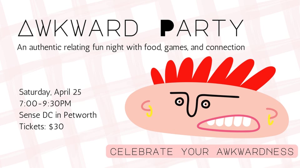 Ever feel like you’re a little awkward? Same! We’re going to lean into at the Awkward Party: An Authentic Relating Fun Night. There will be food, games, fun, and connection!